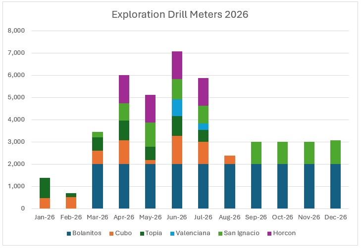 The GSilver team has been preparing for the 2026 drilling program for several months and is well advanced on all fronts, including the permitting of surface drilling campaigns at Bolanitos, Cubo, and Horcon. The Company expects to receive all necessary drilling permits before the end of Q2 2026; none of the Company's planned underground drilling activities require additional permits.